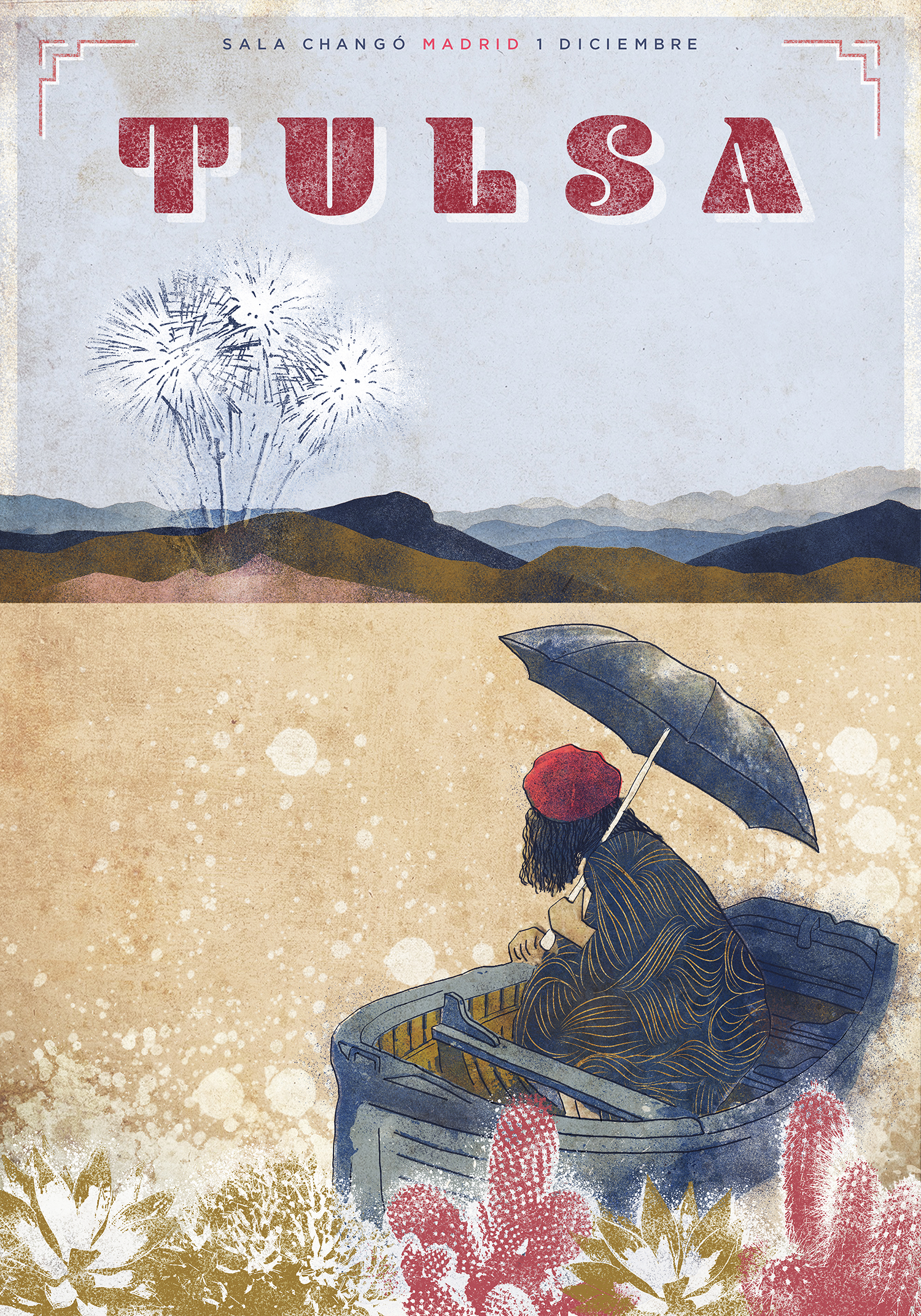 Proyecto final del curso “Ilustración para music lovers” impartido por Oscar Giménez consistente en la creación de un póster inspirado en la música de Tulsa.